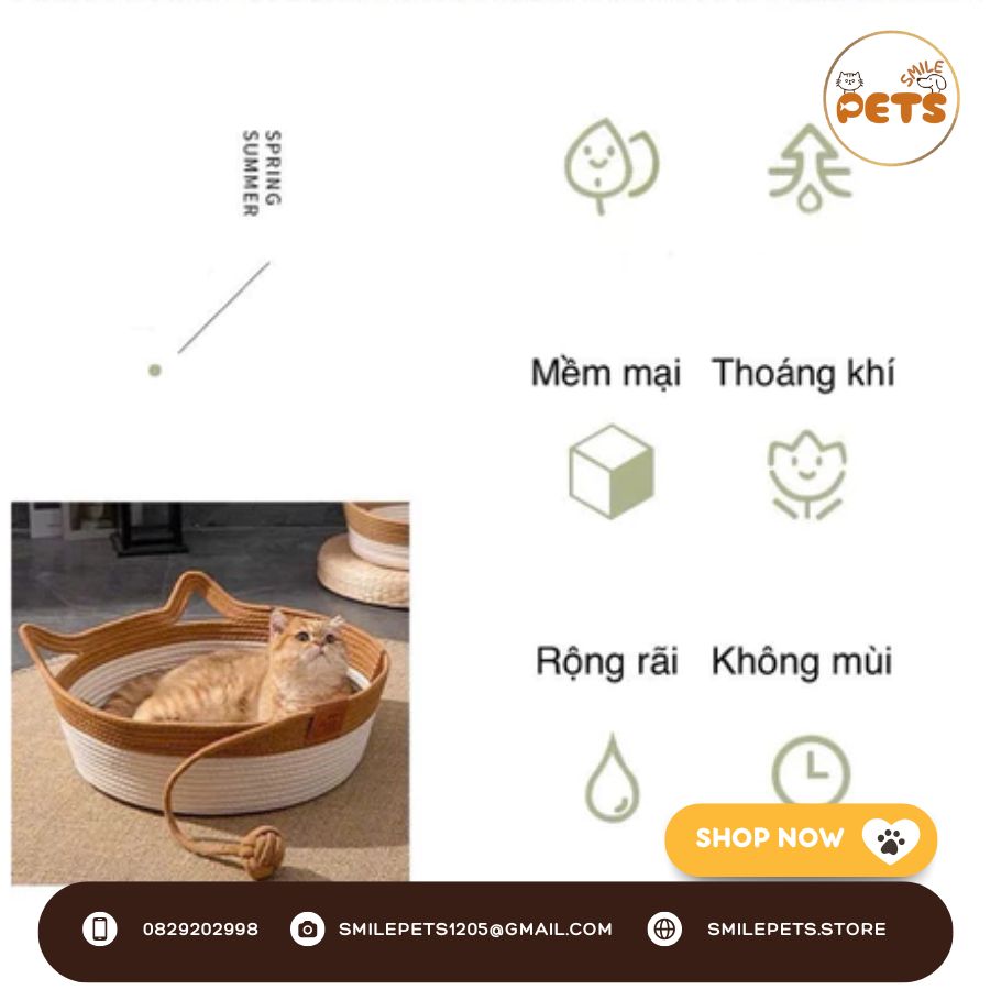 Thiết kế hình giỏ ấm áp: Thành giỏ cao giúp mèo có điểm tựa vững chắc để cuộn tròn ngủ ngon lành. Đây là không gian trú ẩn lý tưởng giúp mèo giảm căng thẳng.